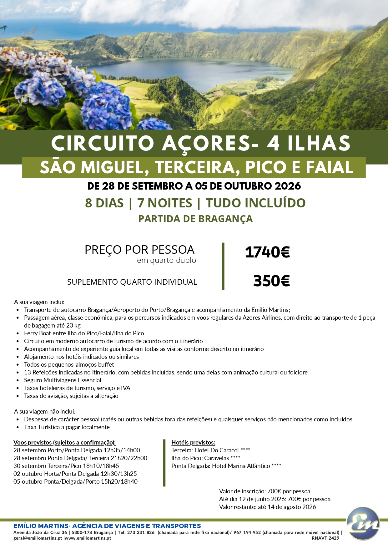 Preço por pessoa, desde: 1740€