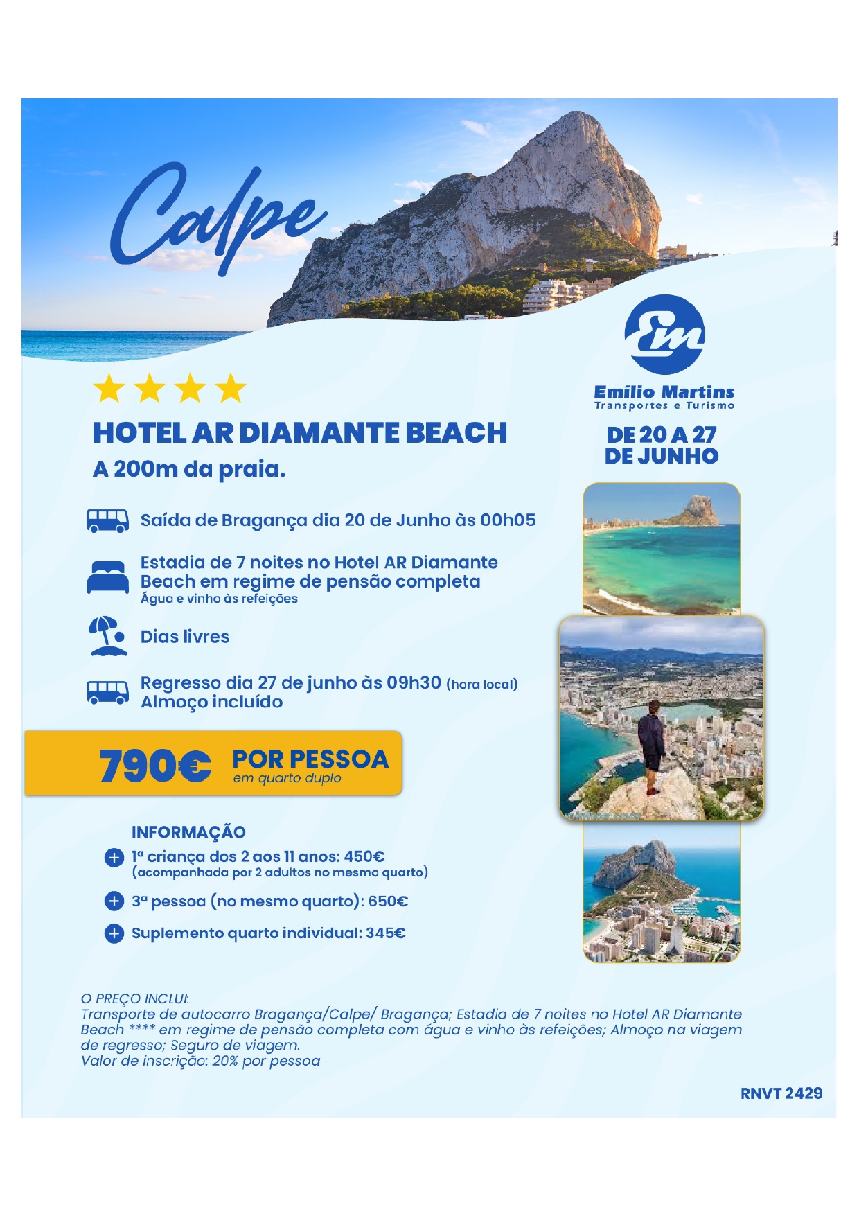 PREÇO POR PESSOA EM QUARTO DUPLO: 790€