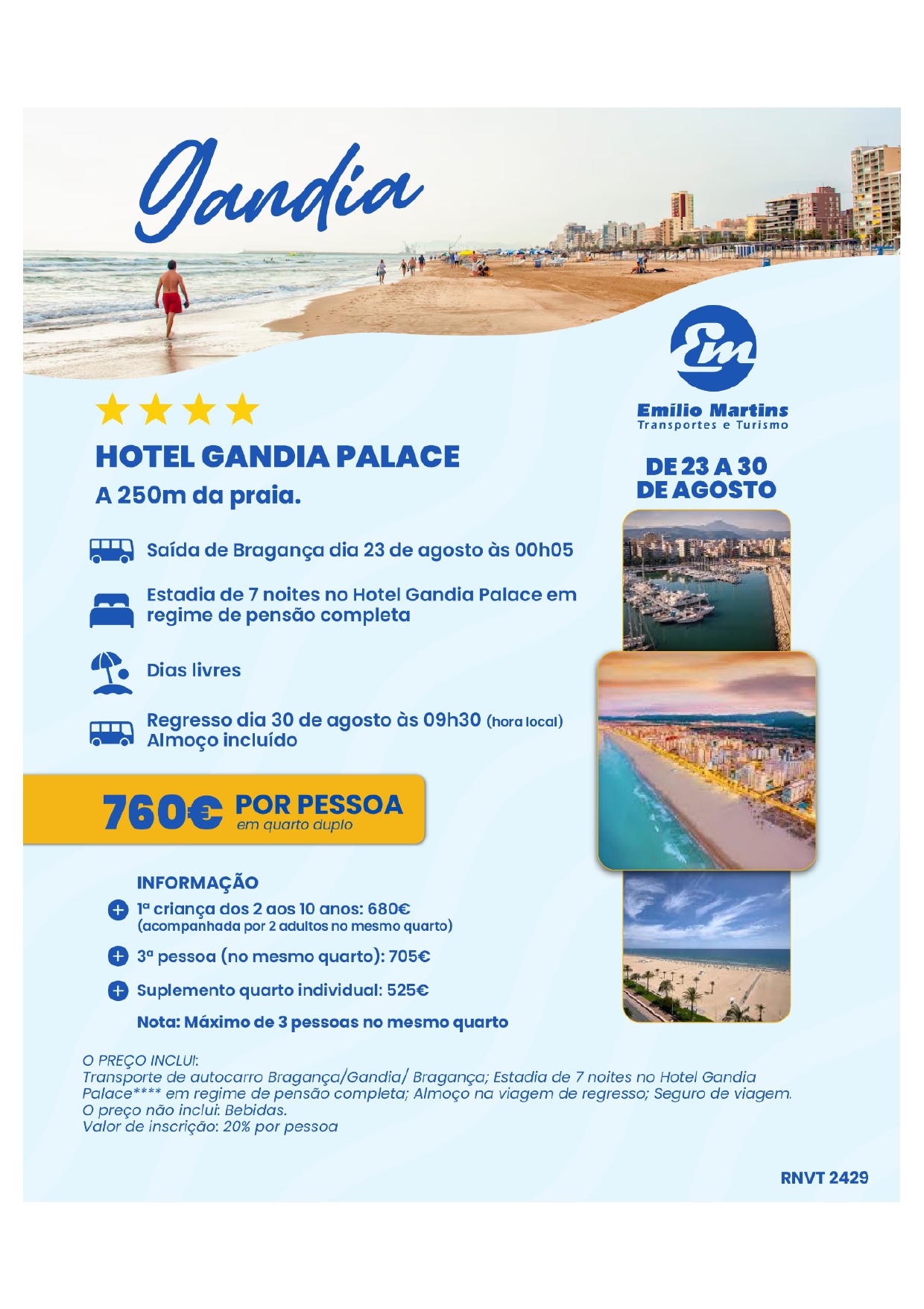 1ª criança dos 2 aos 12 anos: 615€ (acompanhada por 2 adultos no mesmo quarto)