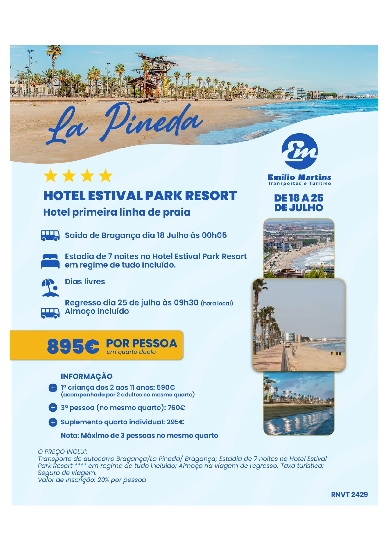 PREÇO POR PESSOA EM QUARTO DUPLO: 895€